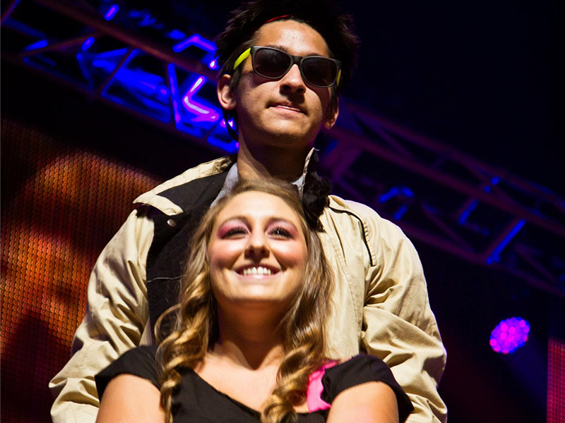 Projection, dance, juggling, magic, scenery, props, commerce